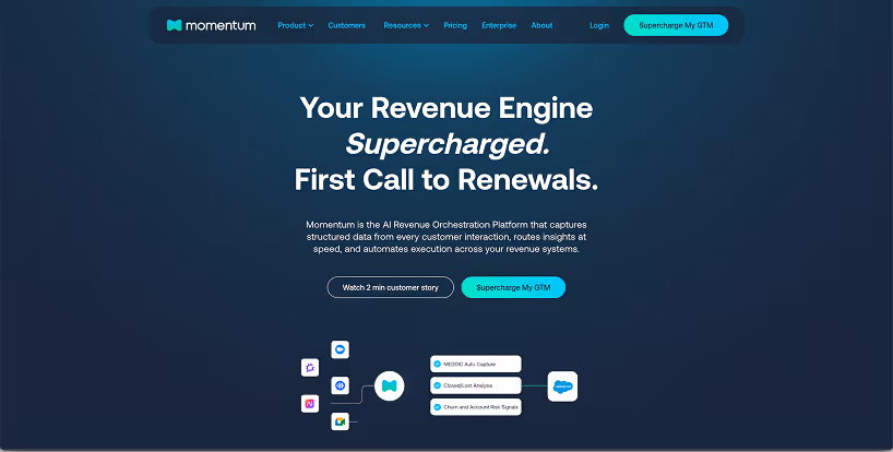 Key Features: Momentum is positioned as an "AI-native Revenue Orchestration Platform," not just a notetaker49. It is built to do something with conversation data instantly.