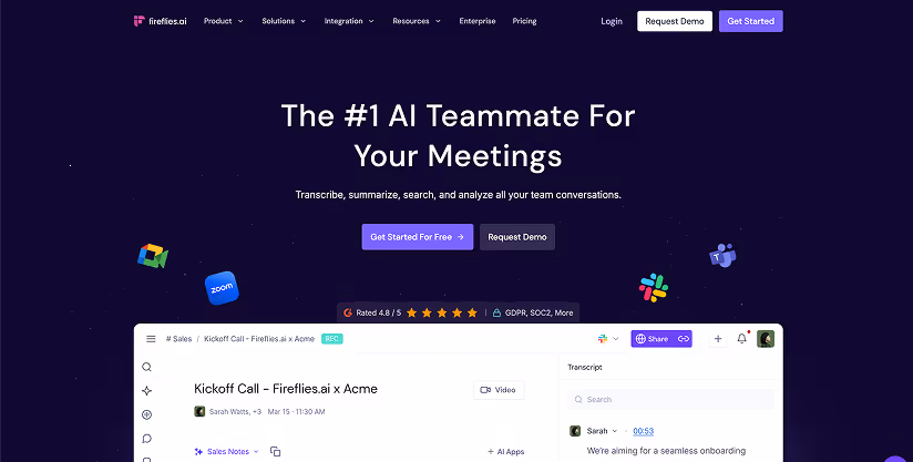 Key Features: Fireflies.ai (or "Fireflies") acts as a bot that auto-joins meetings from your calendar.