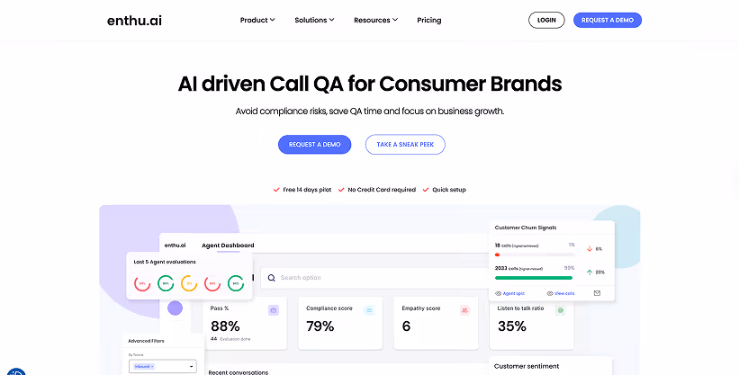 Key Features:: 100% call coverage, custom call scoring, and transcription. Agent performance dashboards and feedback workflows. Call tagging and moment detection for training.