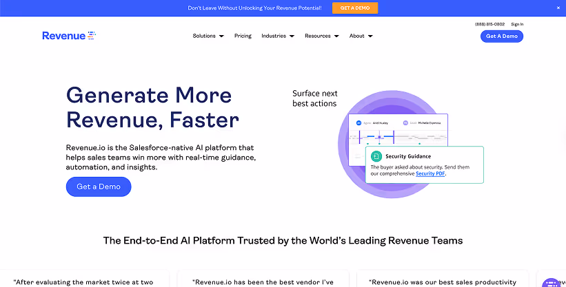 Revenue is an excellent all-in-one solution for outbound, phone-heavy sales teams. It streamlines the cold calling workflow by combining the dialer, call recording, and AI analysis in one tool. Its focus on immediate, real-time coaching helps ramp up rep performance quickly. The automation of post-call admin work also improves rep productivity.