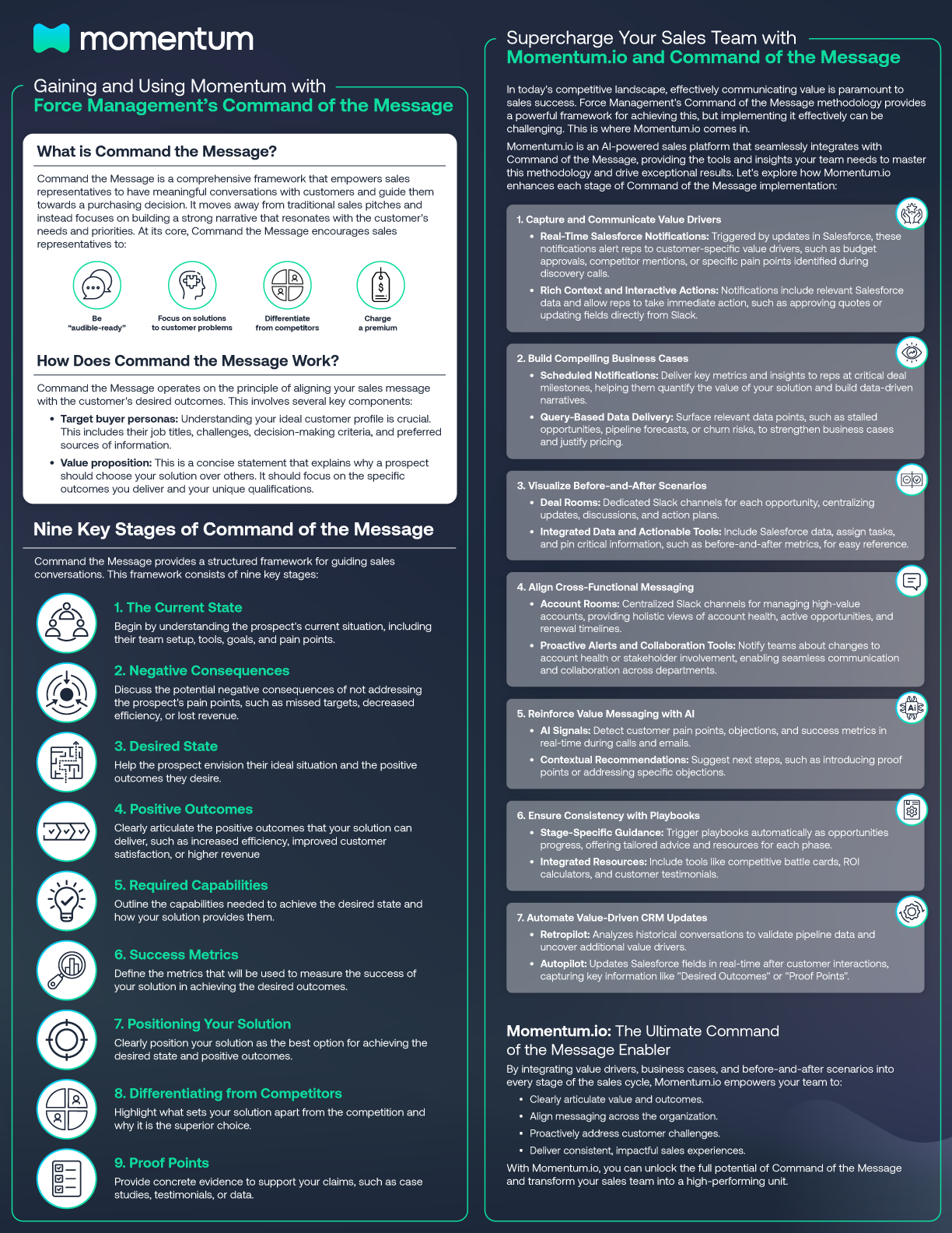 In today's competitive landscape, effectively communicating value is paramount to sales success. Force Management's Command of the Message methodology provides a powerful framework for achieving this, but implementing it effectively can be challenging. This is where Momentum.io comes in.