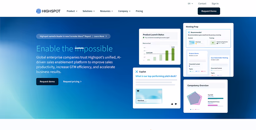Best for:: Sales enablement teams that want deep content intelligence + coaching