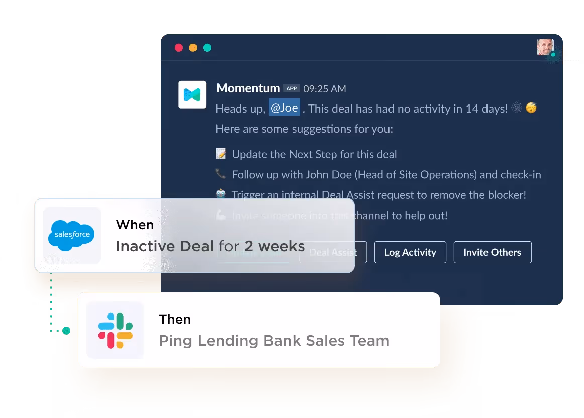 On the Momentum Automation side, we released time-based notifications. Now you won't need to worry about remembering to track renewal timelines, keep track of due dates or deal with stale data. Push the right notification at the right time to ensure quality data hygiene in Salesforce.