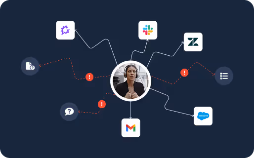 - Spends 30–45 minutes pulling data from Salesforce, Zendesk, and email.