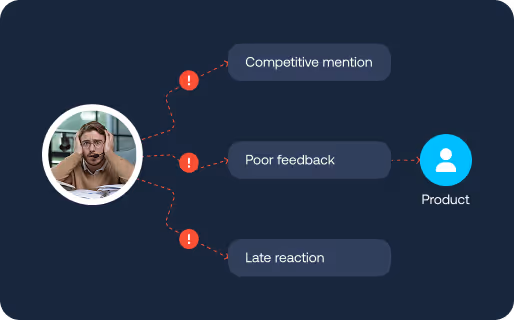 - Smart Clips of competitor objections shared directly with Product + Enablement.