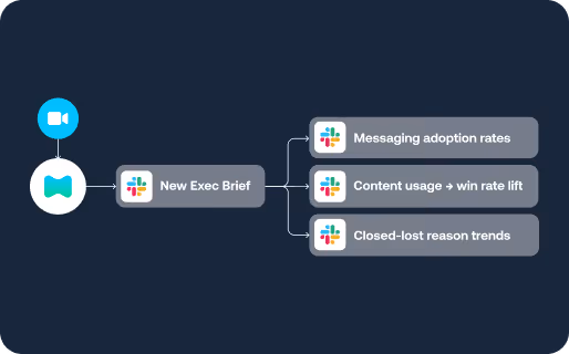 - Daily Slack/Teams update: “New security campaign language referenced in 31 calls, win rate impact +18%.”